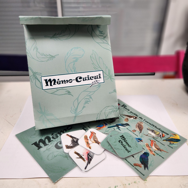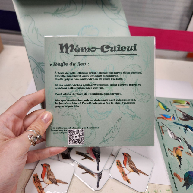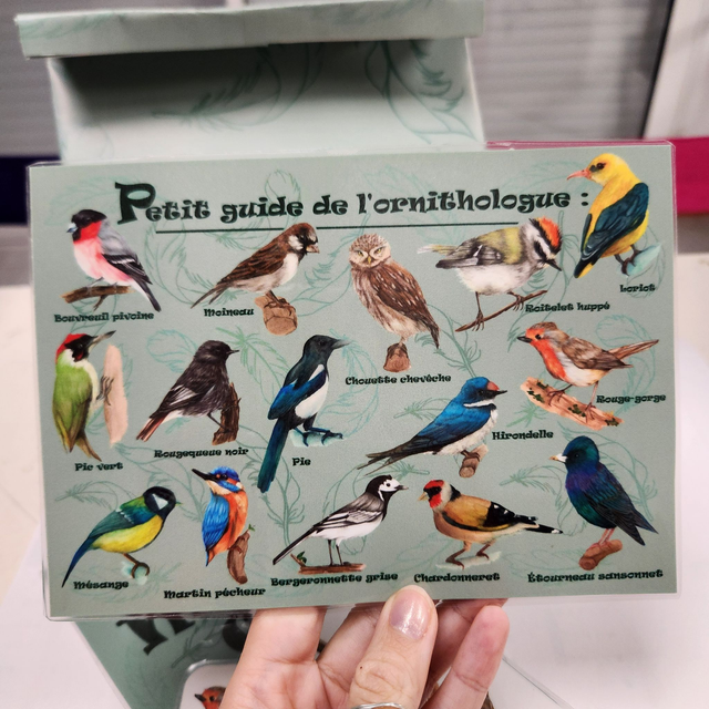 composé de 30 cartes d'oiseaux, d'une règle du jeu ainsi que d'un guide pour apprendre à reconnaître ces petits oiseaux